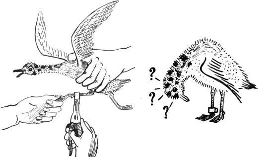 By 1945, Tinbergen was eager to get back to his birds. He believed in unfettered observation, in field work. His mantra was “watch and wonder.” Not much time for that during the war. Still, he managed to write a small book about bird sociology, and, while in the camp, some illustrated stories about a Herring gull, which eventually became a beloved children’s book in the Netherlands. What a contrast: Tinbergen imprisoned, dreaming of gulls, the free-flying seabirds of the North Sea. Lorenz walking free, twisting his own observations of birds into a justification for the worst kind of containment and brutality. And later, exploiting their imprinting instinct to form, in the name of science, a twisted patriarchy. To quote Sappho Durrell, on her own father: “I will always have his ego between me and the world, and my surroundings will be as dry as dust.”